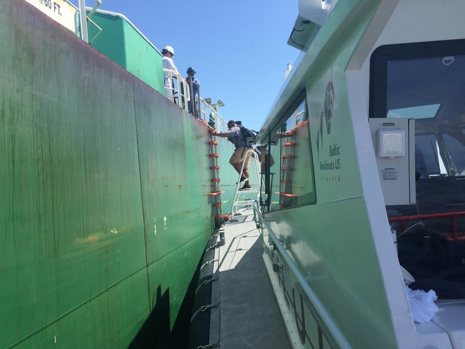 Baltic Workboats US pilot Boat “Pilot No 7” putting a Savannah pilot onto an inbound ATB